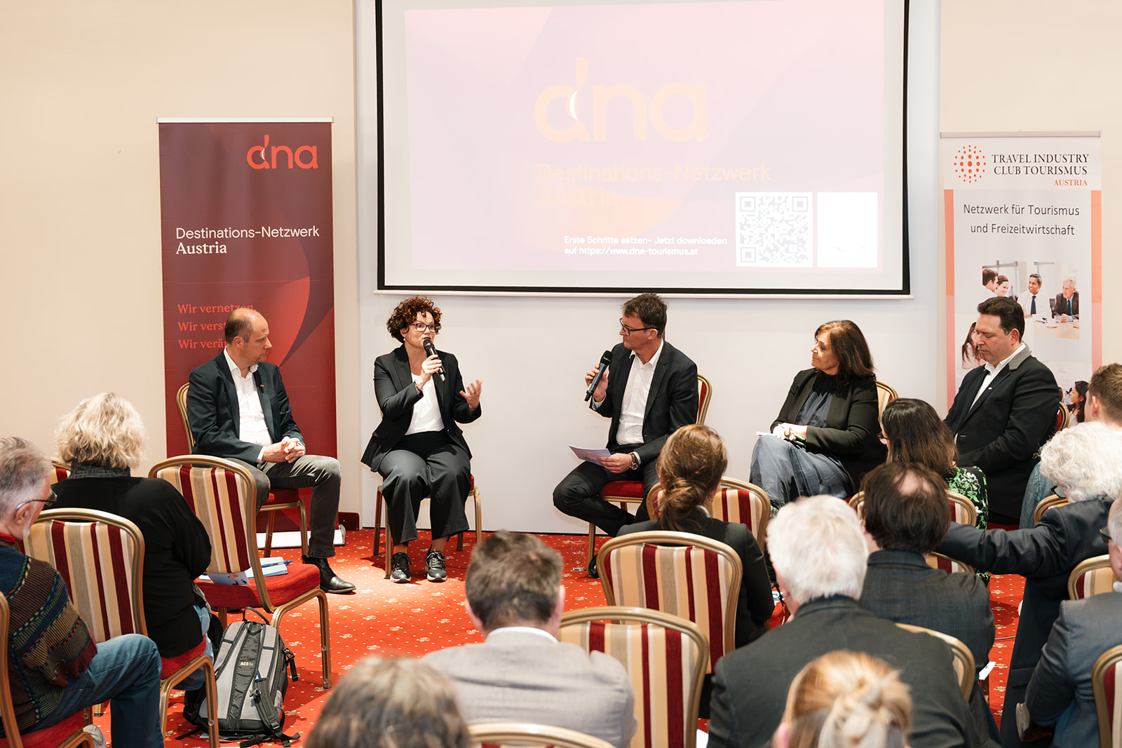 Wien, 23. Februar 2026 – Touristischer Erfolg entsteht nicht im luftleeren Raum. Infrastruktur, Fachkräftemangel, ökologische Herausforderungen und eine zunehmend sensible gesellschaftliche Diskussion machen deutlich: Wer langfristig erfolgreich sein will, braucht Rückhalt in der Bevölkerung und ein neues Verständnis von der Destination als Wirtschafts- und Lebensraum. Dieser strategische Perspektivenwechsel stand im Mittelpunkt einer hochkarätig besetzten Podiumsdiskussion auf Einladung des Destinations-Netzwerk Austria (dna) und des Travel Industry Club Tourismus Austria (TICT).