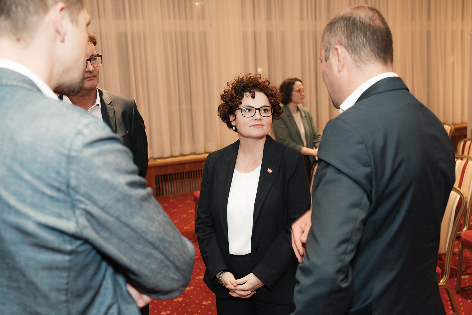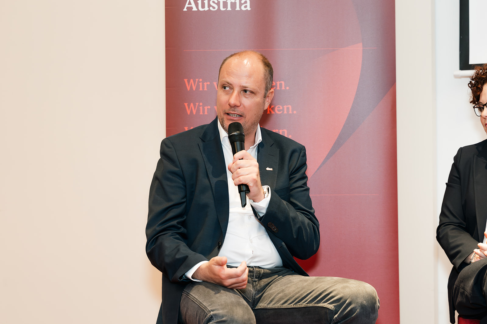 Foto Diskussion v.l.n.r.: Mathias Schattleitner, Staatssekretärin Elisabeth Zehetner, Florian Größwang, Dagmar Lund-Durlacher, Manuel Bitschnau
